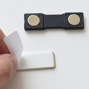Tháo băng keo hai mặt của nam châm và dán lên huy hiệu