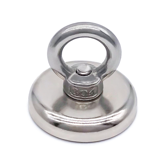 Nam châm câu cá Neodymium tròn một mặt bằng thép không gỉ Eyenut